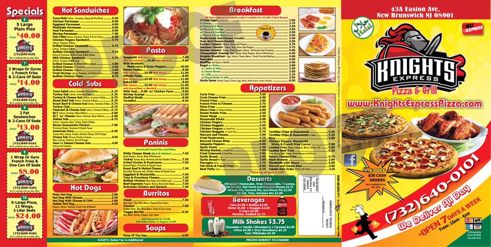 Customers rave about the generous portions and delicious flavors, with standout dishes like chicken parmesan and penne vodka receiving high praise. With late-night hours, friendly service, and affordable prices, Knights Express Pizza & Grill is a must-visit for both locals and visitors alike.
